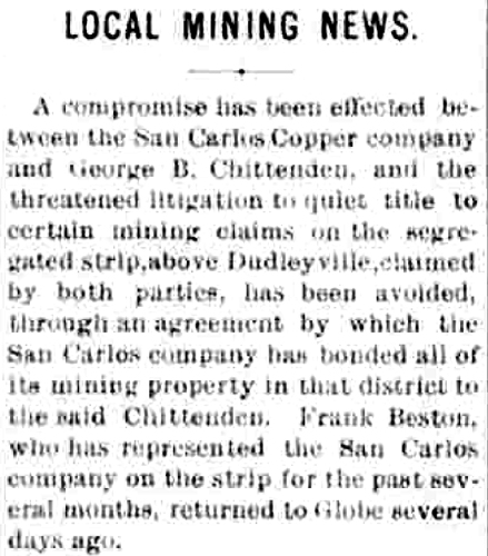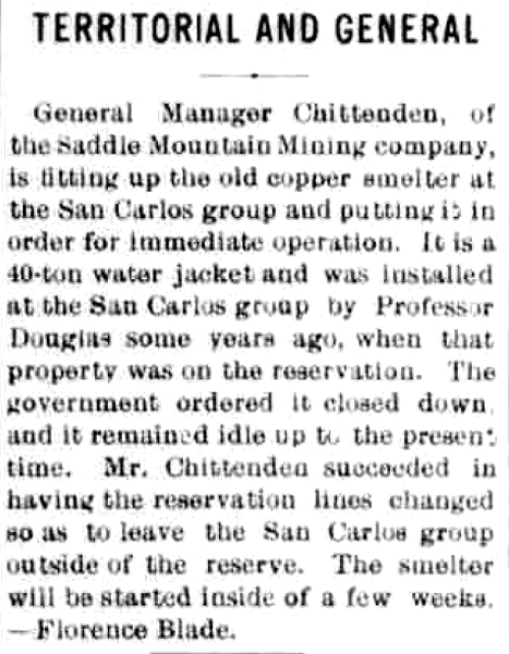 Apparently, Mr. Chittenden was one of the driving forces behind the change in the reservation boundary. His influence was noted in this newspaper article that was published in the Arizona Silver Belt on October 13, 1904.