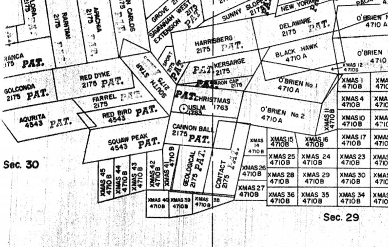 In later years, Mr. Chittenden may have acknowledged that the group had made entry to the area earlier than the date reported in the name story. In a 1925 USGS report, the author wrote "Just before Christmas, 1902, Chittenden and three other men located a group of claims covering the deposits. The mine was named from this circumstance."(8) The author of the report stated that his information had been "Compiled from data supplied by G.B. Chittenden and others".(8)
