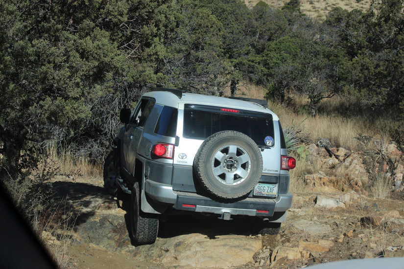Negotiating one of the rocky ledges on Forest road 345A