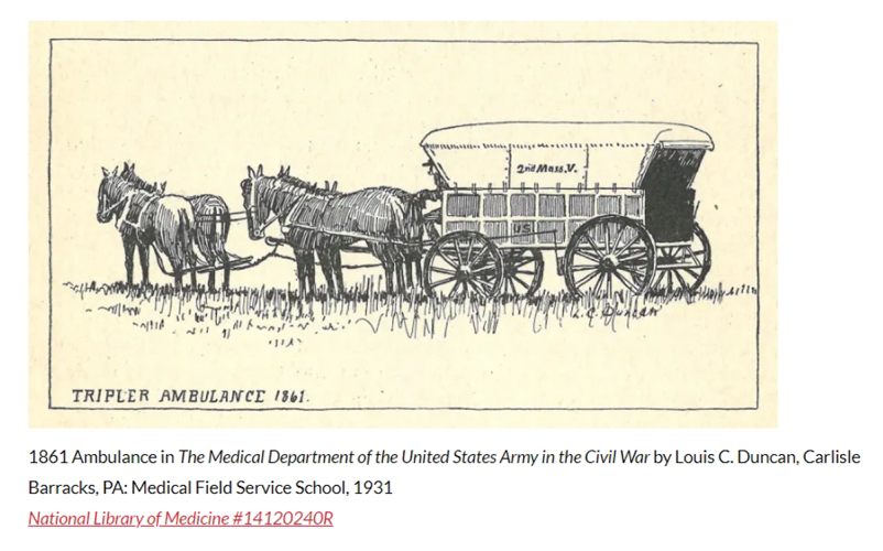 The wagon carrying the men of the escort was a civil war era Army wagon pulled by 4 mules. A newspaper article, (The Montana Post, May 19, 1866), described the wagon as being an "ambulance". The wagon may have looked like the one in this drawing.