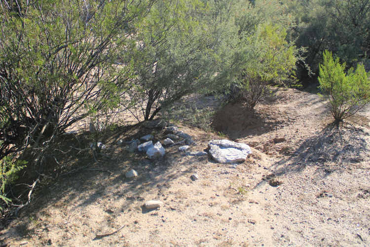 Captain Hager found the bodies of Captain Millar, and two of the other soldiers in the wash on the downstream side of the south rock formation. The wagon and a butchered mule were also found there. That area can be seen in the foreground of this photo that was taken from the top of the south outcrop.There is no indication on Hager's diagram as to what the situation was with the plant growth in the wash.