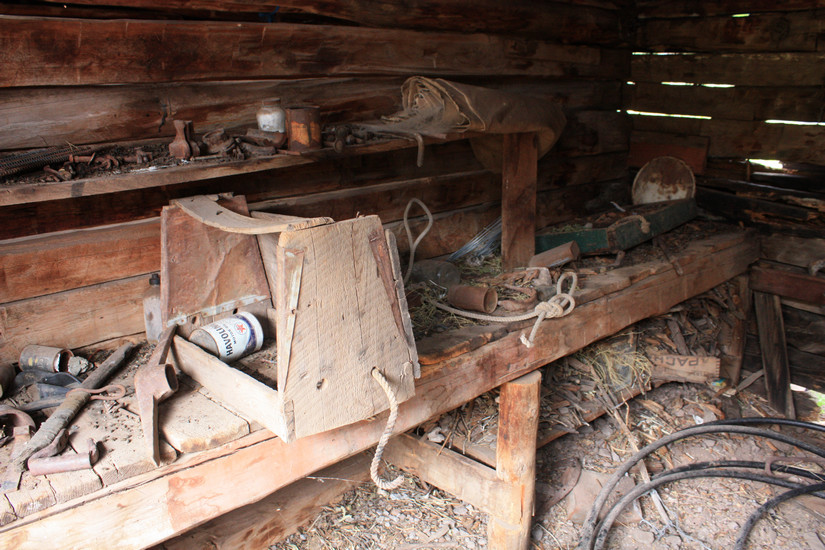 Miscellaneous odds and ends seen in the shed--plus packrat nest