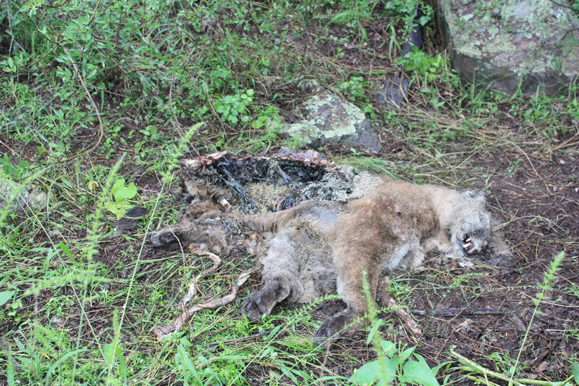 Partially eaten Mountain Lion carcass found just a few hundred feet north of house. We could not determine what was eating on it.