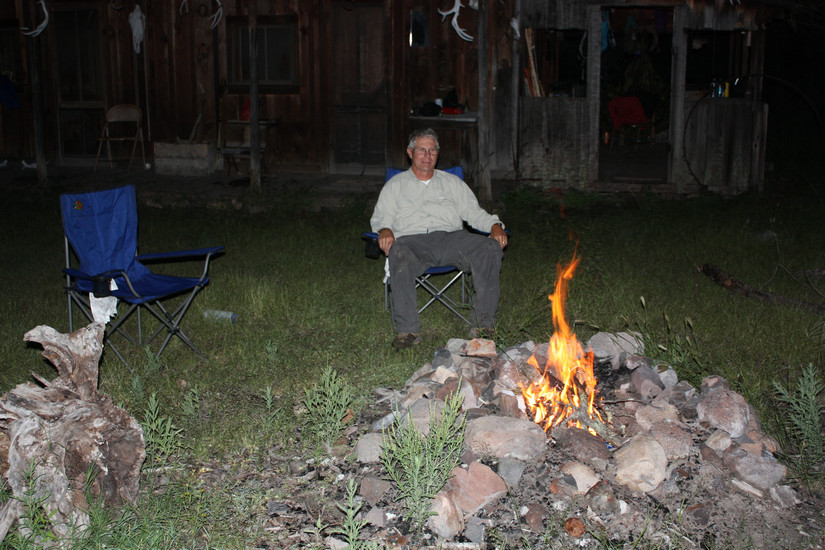 Enjoying some of the amenities left by previous visitors to the ranch site.