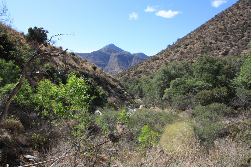 View down Howell Canyon. The tall peak in the distance is Government Peak, the highest in the Dos Cabezas Mountains at just over 7500'