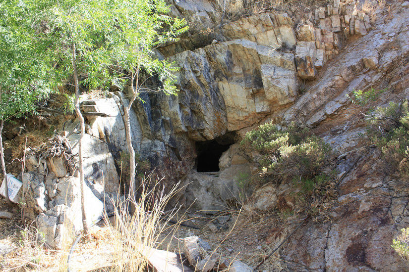 The prospect in upper Howell Canyon. It has been dammed to collect and hold water.