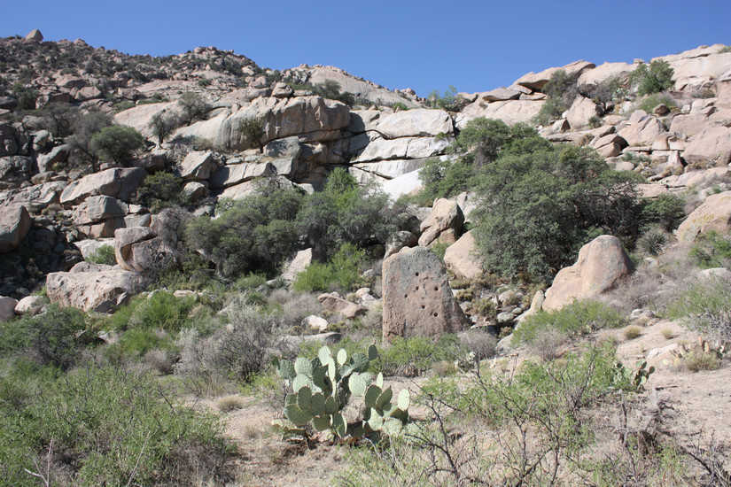 The boulder with the unusually oriented grinding mortars
