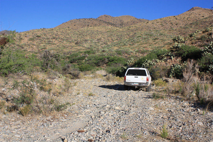 After the picnic area, the road forks. The road we want goes west up Happy Camp Canyon.