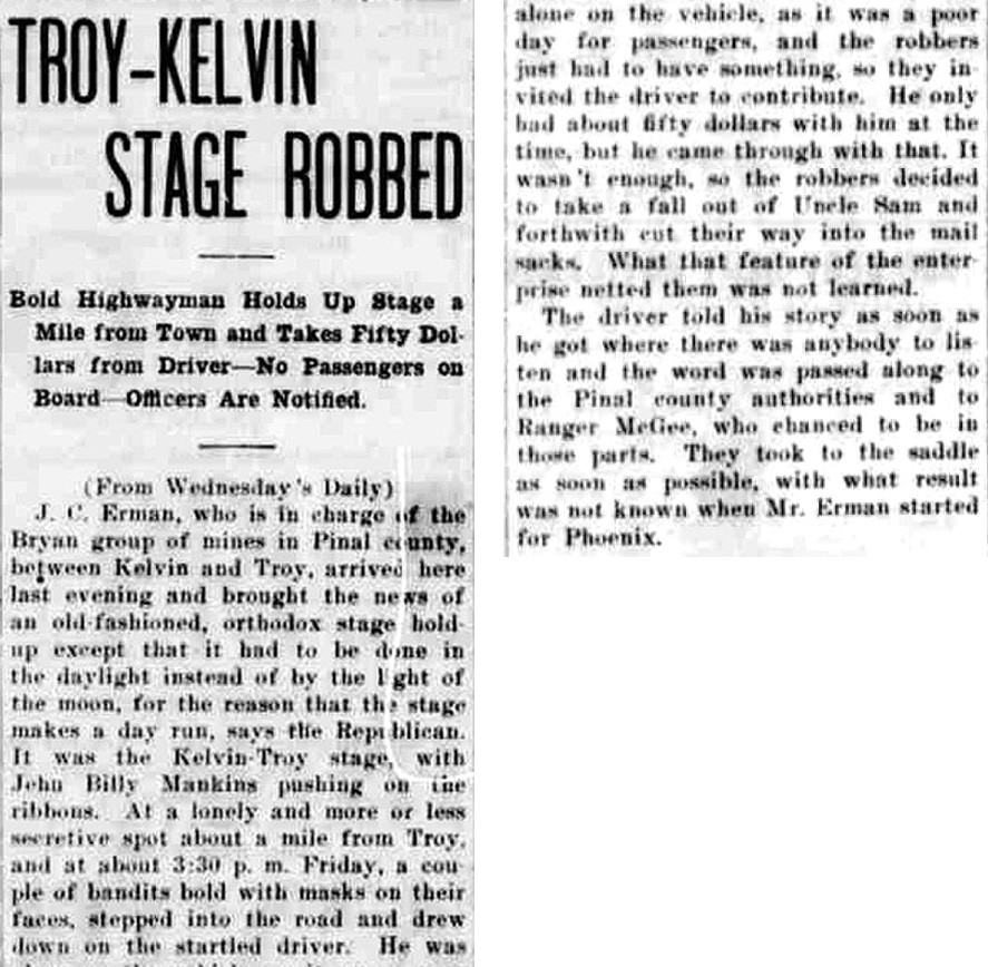 I have inserted one brief report of the robbery. This article appeared in The Coconino Sun.