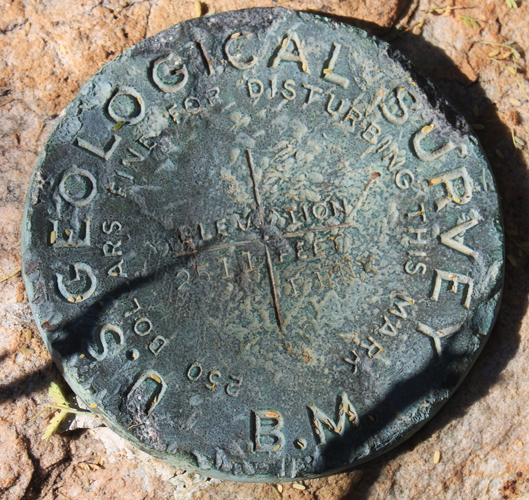 In this close up view of the benchmark, the stamp "2511" and "PHNX" is as described in the early index. On modern maps, the benchmark is identified as BM2510. The disc was identified as being made of bronze.
