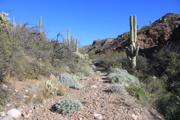 These were some of the obstacles that were bypassed by the section of the road that was constructed away from the wash.
