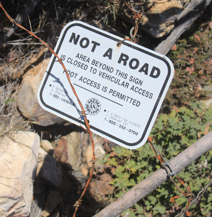 In 2016, this sign on a gate in a fence that crossed the road announced that vehicular access was no longer permitted on up the canyon. In 2023, that sign had been replaced with one that simply asked that the gate be kept closed.
