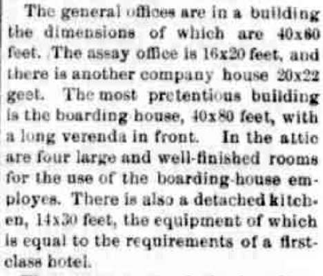 This is an excerpt from one article published in the Arizona Silver Belt that described some of the buildings in the town. From this description, it may be possible to identify the large building in the early photo of the camp that was dated around 1901.