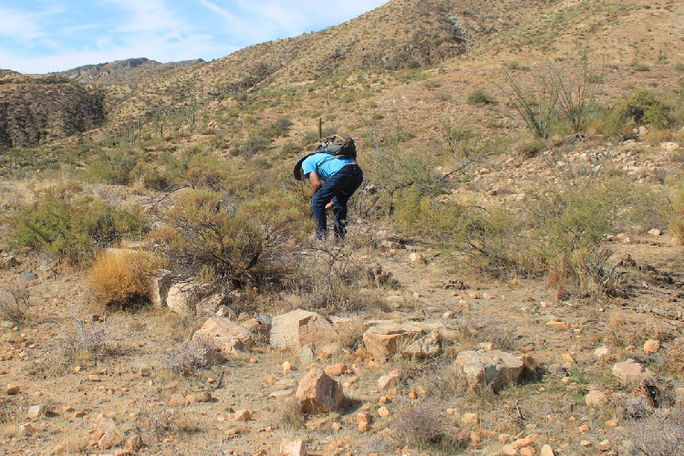 Even though the area near the benchmark was at the edge of the Troy Camp, it is evident that this area had at one time been occupied. These stone alignments could have marked the location of a miner's tent site.