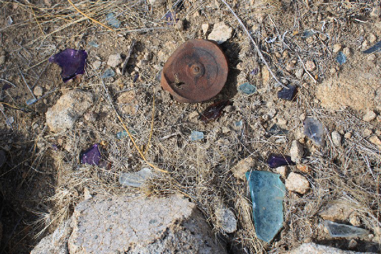 Old cans that had been sealed with solder, and many pieces of sun-colored glass were scattered about.