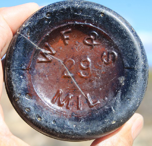 While saloons were not allowed in Troy, it was not illegal to have alcohol. Many broken liquor bottles were seen as we walked around. This was the base of a beer bottle manufactured in the early 1900s by William Franzen and Son in Milwaukee Wisconsin.