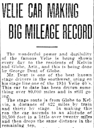 In 1913, an autostage company was running the Velie brand of automobile. The elevation change described in the article was exaggerated by several thousand feet.