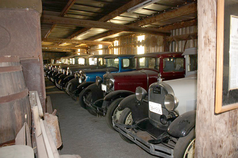View inside the larger of the pole barns. There are at least 20 vehicles inside this shed.