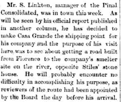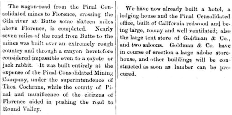 Articles, from the early 1880s, that were published in "The Arizona Weekly Enterprise", a Florence newspaper, provide context to the places and roads noted on the early maps.