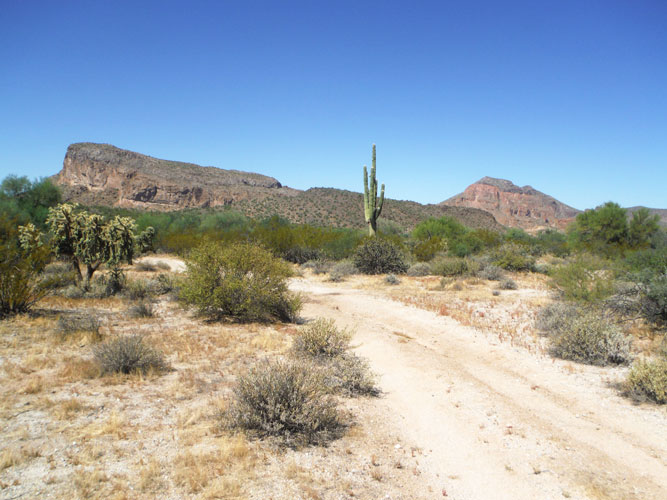 At N33° 04' 45.91" and W111° 11' 05.69", the route leaves the wash to the west and begins the turn around South Butte.