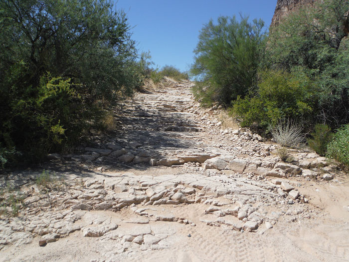 The sand in Donnelly Wash is very deep. Heavily loaded wagons would not have had an easy time negotiating this section of the road. It is not the easiest travel even in modern vehicles.