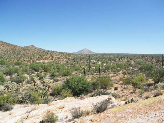 This is the view to the east. Grayback Mountain is in the distance. The surveyor in 1892 described the vegetation as "Dense Palo Verde Brush". There was no mention of any saguaros.