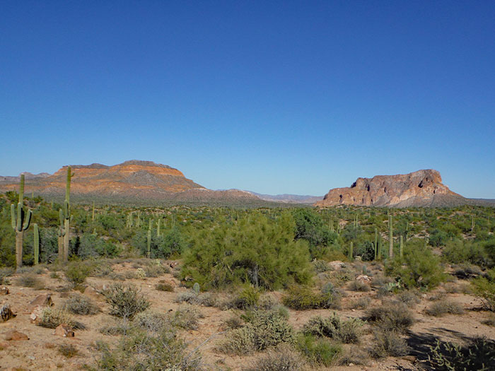 This is the view to the east of North Butte on the left and South Butte on the right from the Whitlow Ranch Road.