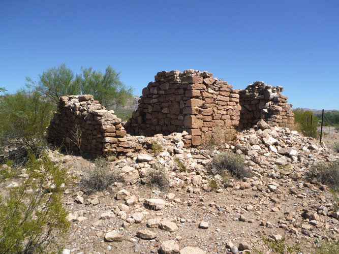 The announcement was made, in the November 18, 1882 issue of the Arizona Weekly Enterprise, that the smelter was nearly ready to go back online. Two of the charcoal kilns had been completed and were charged with wood. I think that it is those charcoal kilns that are seen at the "coke ovens" site today.