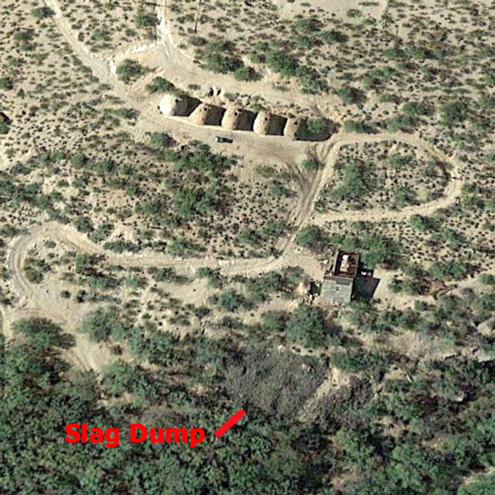 This Google Earth View of the Coke Ovens shows that there was more to the site than the kilns. The slag dump is one indicator that this was also a smelter site.