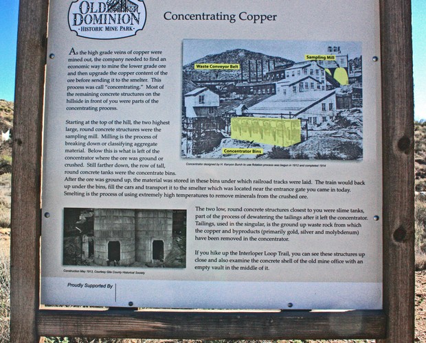 The interpetive signs along the trails are pretty informative. This one explained the concentrating process that was used at the Old Dominion Mine. For a larger version of this sign, click here.