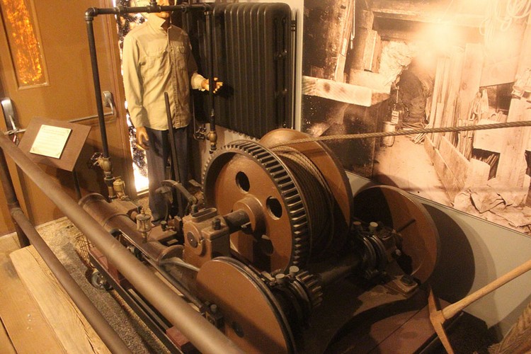 From the Mining area of the museum, there is this display of an old steam powered hoisting machine.