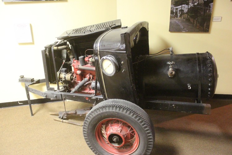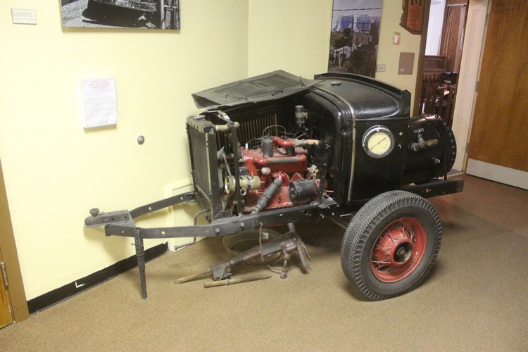 This interesting display is of a Model A automobile that has been converted to an air compressor. Apparently, in the 1930's to 1950's, thousands of these conversions were done. This particular conversion was accomplished from a kit sold by the Smith Air Compressor Company in Kentucky.