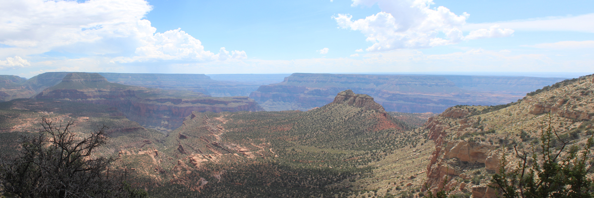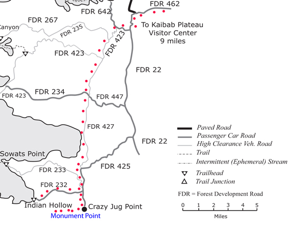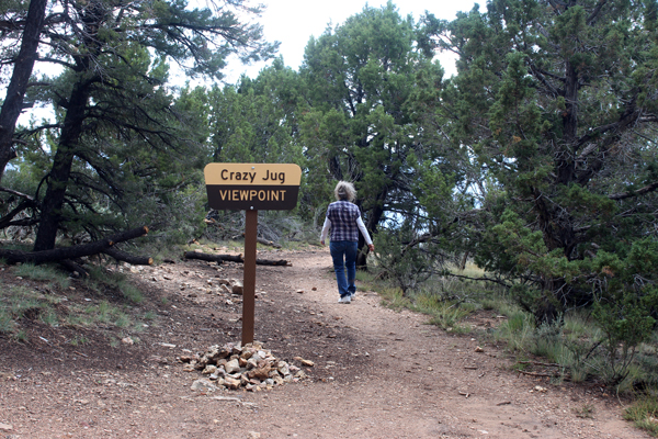 One of our adventures while camped on the North Rim was to travel out to Indian Hollow and Monument viewpoints. I was interested in those two because each was at the trailhead of an inner Grand Canyon hiking trail. Crazy Jug point was added to the mix because we had to pass by there to get to the Monument overlook. These are all westside viewpoints located approximately 25 miles southwest of Jacob Lake.