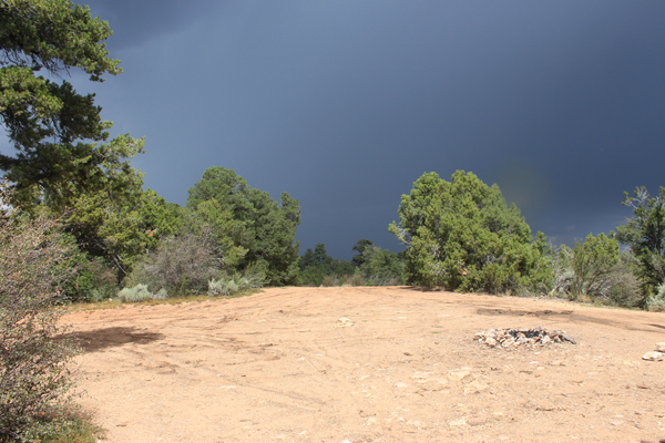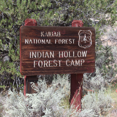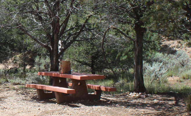 The Indian Hollow campground is a small developed area with 3 tables and a toilet. There is some shade under the pinyon pine and juniper trees.