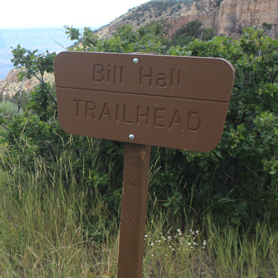 The Bill Hall Trailhead is located near Monument Point. This trail presents a shorter, but more strenuous, route to the Thunder River area than the Thunder River Trail over at Indian Hollow.