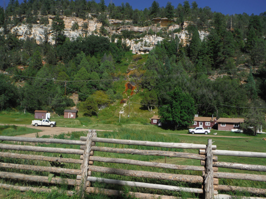 We returned to our camp via Forest Road 22. Along the way we passed the large Forest Service Administrative Site at Big Springs. The run-off from the springs has stained a large area on the mountainside. Big Springs is described as the most "abundant" spring on the Kaibab Plateau. There are several spring fed ponds at the site.