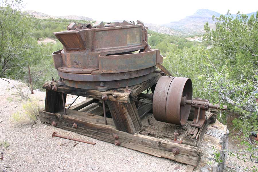 This grinder was more nearly operational. It is the most complete of this type of grinder that we ever seen. We believe that it is an example of a "Harrington Roller Quartz Mill".