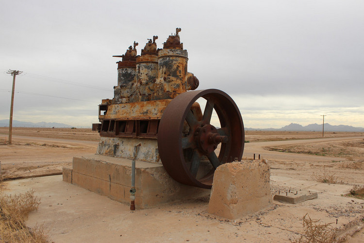 Was the pump belt driven or was it connected to in some other way to the engine. The output shaft has been cut off with a torch. The concrete pads suggest that some type of machinery was attached out there. Perhaps there was a generator?