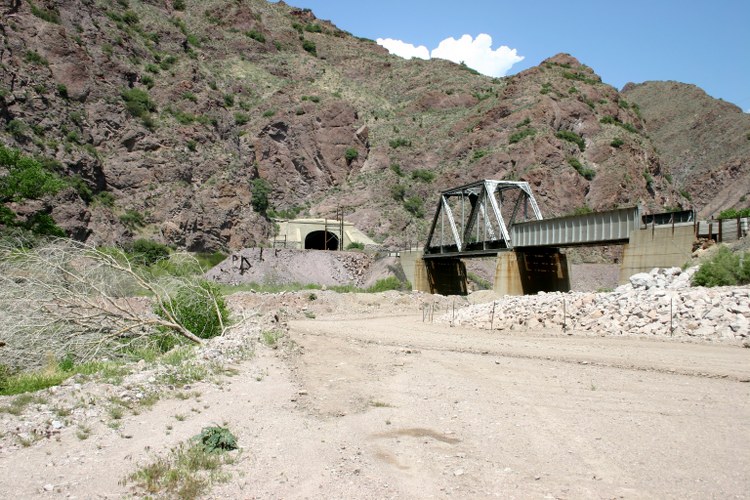 Railroad Tunnel and trestle over Meadow Valley Wash.