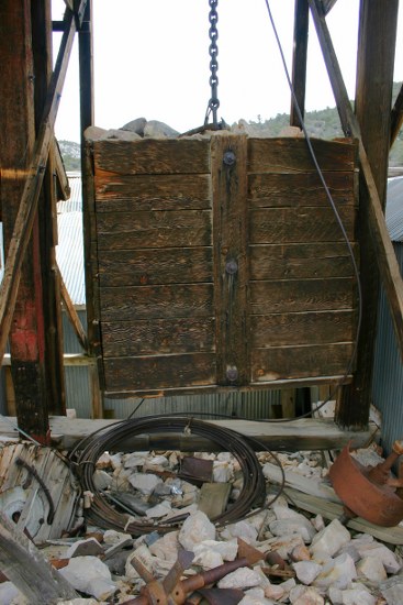 Box filled with rock to act as a counterweight to help provide tension on the tram cable