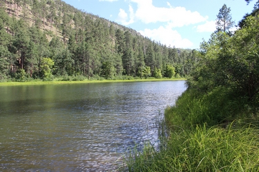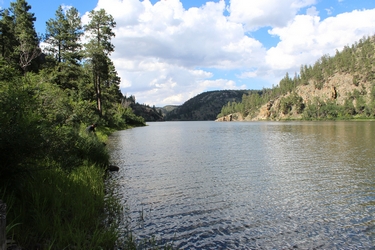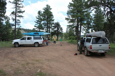 Chevelon Lake is one of the "Rim Lakes" found up on the Mogollon Rim northeast of Payson Arizona. Formed by an earthen dam across Chevelon Creek, the lake is probably the least accessible of the lakes in the area. It is a long drive on dirt roads out to the vicinity of the lake. With no vehicular access to the water allowed, all watercraft that are to be used must be carried or carted down about a mile to the lake's edge.