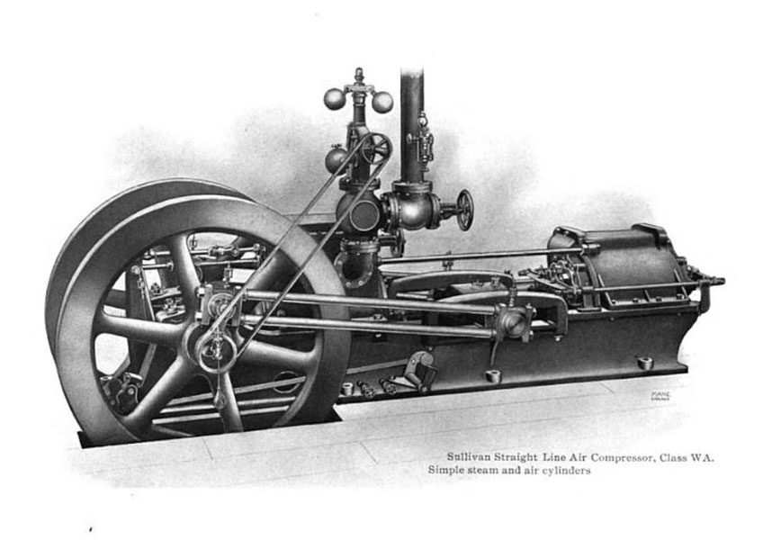 1902 Catalog Illustration of a Sullivan model WA single stage compressor