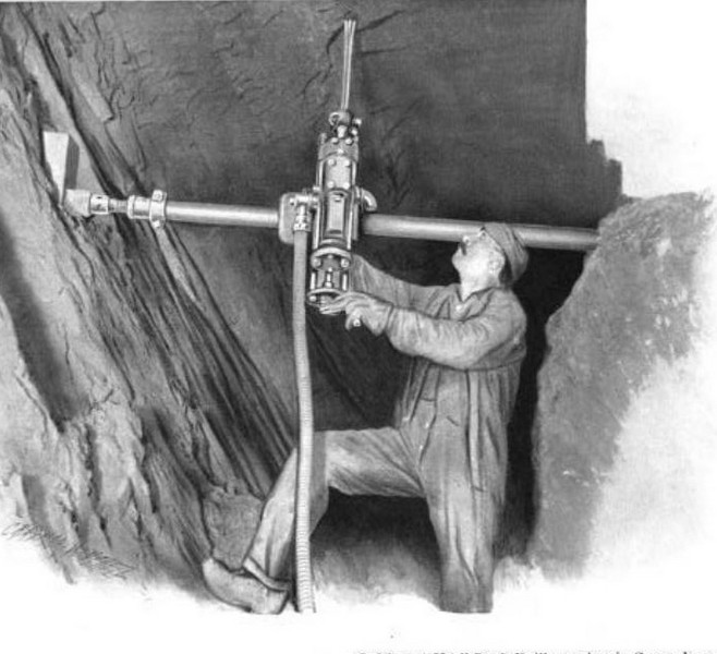 A Sullivan Rock Drill set-up as a stoper
