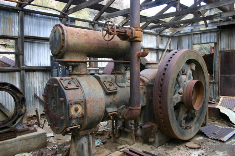 This machine is a combination diesel engine and air compressor. The circular frame to the left is a remnant of a generator that