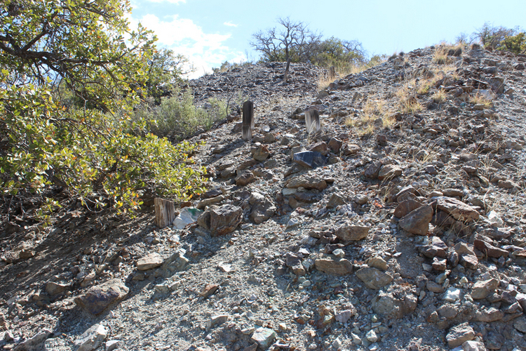 I wonder whether these stubby posts once supported the old ore chute associated with the old shack on the hill?