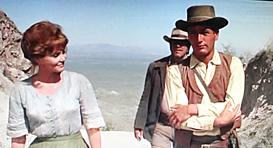 This scene from the movie Hombre shows Paul Newman and the othe actors walking through Gun Sight Pass.
