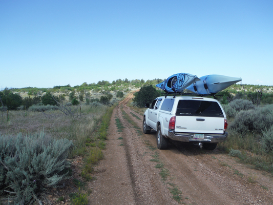 This is FDR 234 near its intersection with the 447 road. There were shallow ruts in the wet dirt. Our kayaks were just along for the ride.....