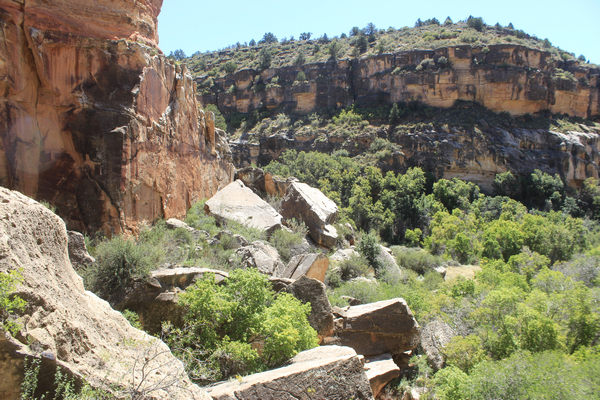 Just past a large rockfall, the trail crossed over to the east side of an intersecting canyon.