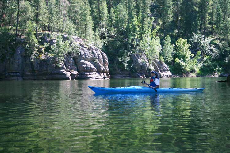 My wife Karen on very scenic Blue Ridge Reservoir.