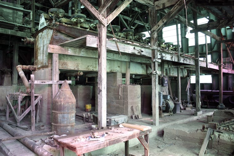 The main mill floor. An engine/generator can be seen tucked into the space below the flotation cells to the lower right of the photo.